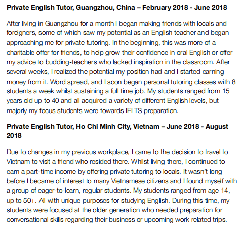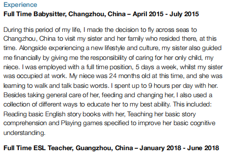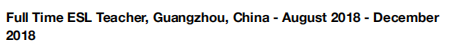 英國(guó)女外教克洛伊,求職廣州職位。薪資20K,有培訓(xùn)學(xué)校教學(xué)經(jīng)驗(yàn),現(xiàn)在廣州番禺區(qū),簽證自理。求廣州全職職位。有150小時(shí)TEFL證書(shū)。 |