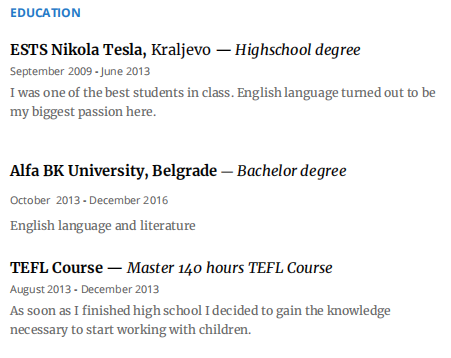 國(guó)籍: 塞爾維亞 求職意向: 教師