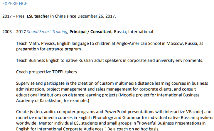 國籍: 俄羅斯 求職意向: 教師