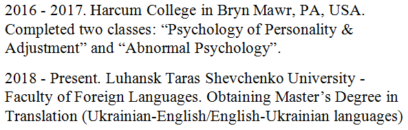 國(guó)籍: 烏克蘭 求職意向: 教師