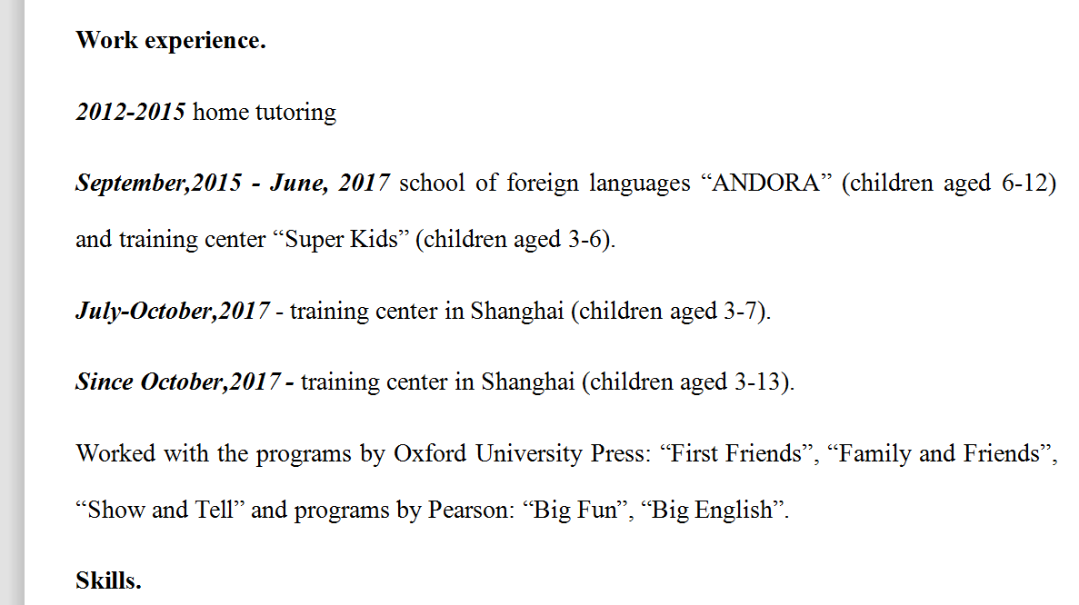 國籍: 俄羅斯 求職意向: 教師