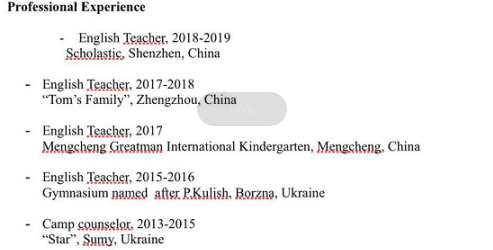 烏克蘭, 英語本課, 工簽資料有, 求職海邊城市 。有豐富經(jīng)驗, 大約3年以上經(jīng)驗 |