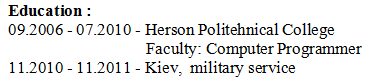 國籍: 俄羅斯 求職意向: 教師