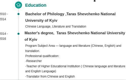 國(guó)籍: 烏克蘭 求職意向: 教師