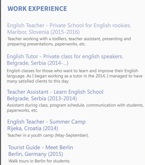 國籍: 塞爾維亞 求職意向: 教師