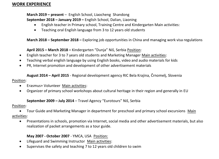 國(guó)籍: 塞爾維亞 求職意向: 教師