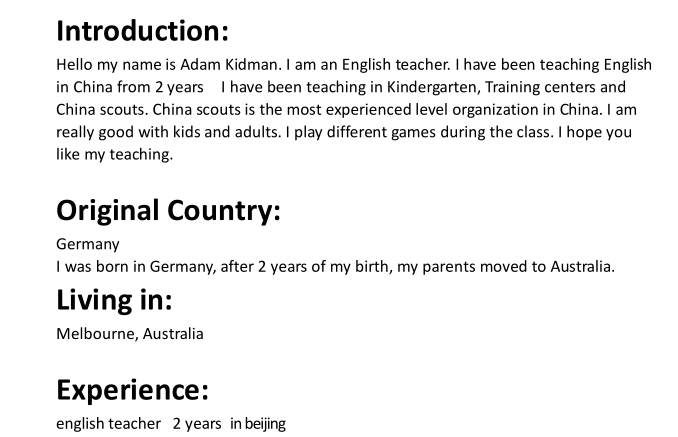 國(guó)籍: 美國(guó) 求職意向: 教師
