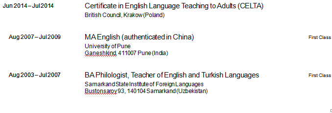 國籍: 波蘭 求職意向: 教師