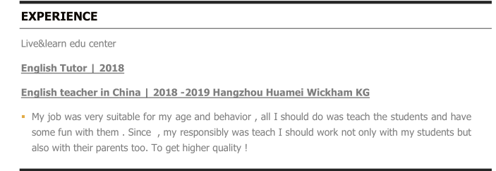 國籍: 其他 求職意向: 教師