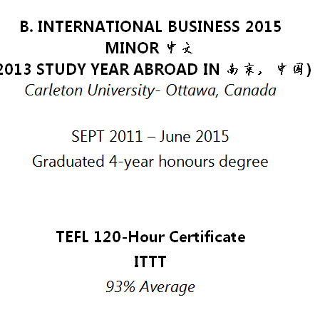 國籍: 加拿大 求職意向: 教師