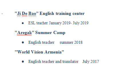 國(guó)籍: 亞美尼亞 求職意向: 教師