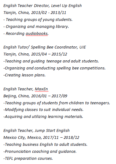 國(guó)籍: 哥倫比亞 求職意向: 教師