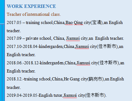 Ekaterina+俄羅斯女+ 漢語言文學(xué)專業(yè)學(xué)士學(xué)位,本科+剛畢業(yè),兩年后工簽資料齊全+地點(diǎn)不限+九月初可到崗 -----此外教非常有禮貌和素質(zhì)  |