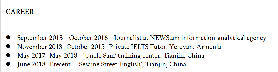 國籍: 俄羅斯 求職意向: 教師
