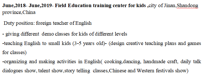 英語語言文學(xué)碩士,發(fā)音較為標準,教學(xué)經(jīng)驗豐富,求職辦理工簽的大城市,想和求職的朋友在一起工作。  |