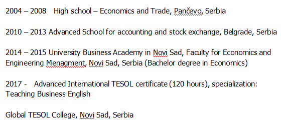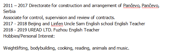 國(guó)籍: 塞爾維亞 求職意向: 教師