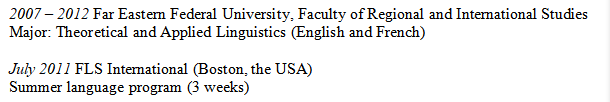 俄羅斯,英語語言學(xué)學(xué)士,赴美國波士頓參加過語言學(xué)項目,發(fā)音標(biāo)準(zhǔn),有教學(xué)經(jīng)驗,傾向教較大學(xué)生,有工簽資料,求職工簽職位 |