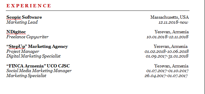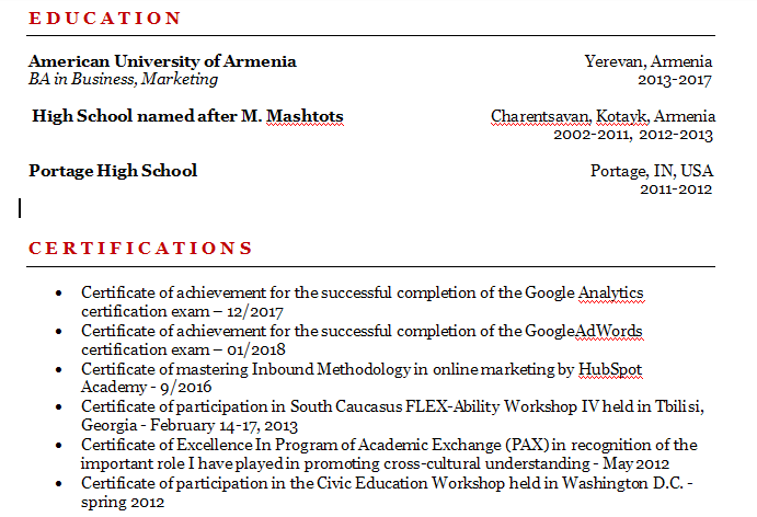 國(guó)籍: 亞美尼亞 求職意向: 教師