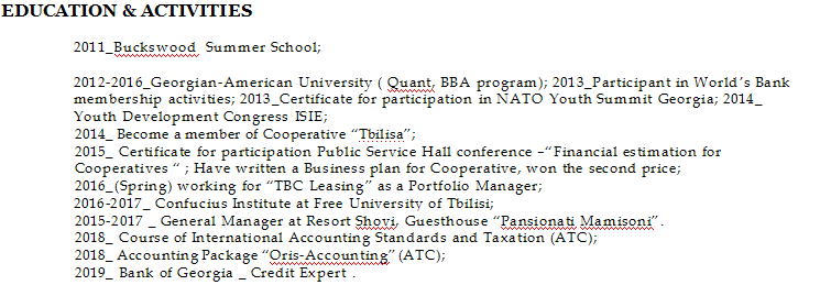 國籍: 亞美尼亞 求職意向: 教師