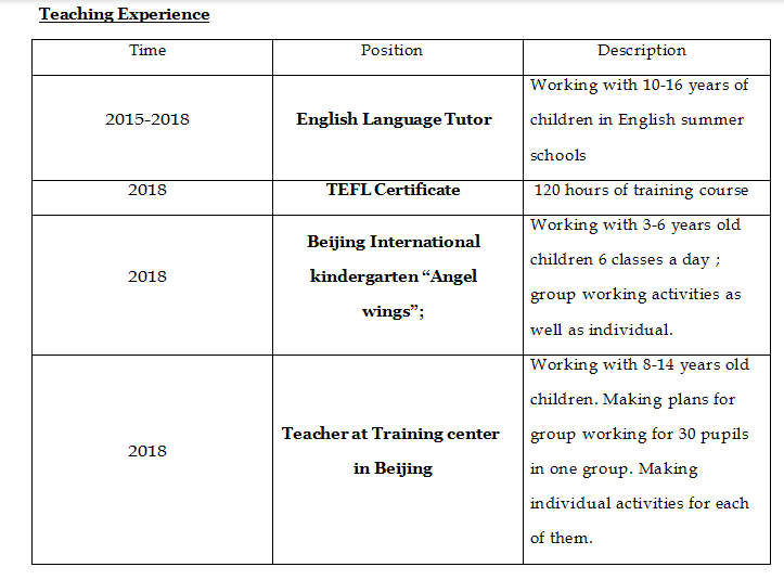 國籍: 俄羅斯 求職意向: 教師