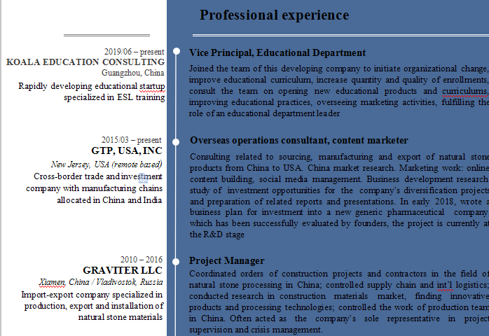 廣州,中山大學碩士,TEFL ,口音很好,會說中文,(在美國麻省理工學習一學期有證書)求職廣州, 有教學經(jīng)驗,最后一份工作是英語教育的副校長,隨時到崗,非常優(yōu)秀 |