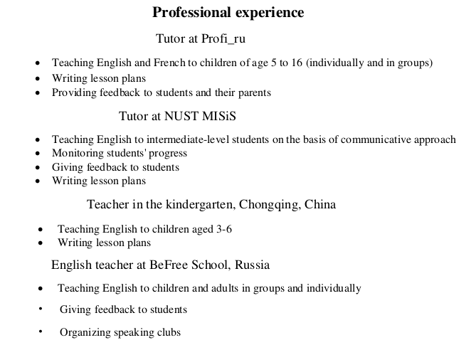 國(guó)籍: 俄羅斯 求職意向: 教師