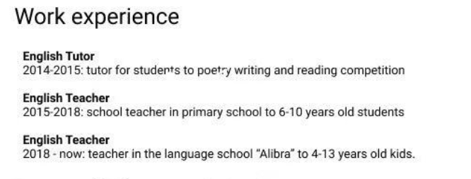 Anna Dodonova+俄羅斯女+本科,4年本國教學(xué)經(jīng)驗+自理商務(wù)簽+至少10k+求職南方城市或上海,不去小地方+期望教12~15歲+目前在本國,2周后即9月底到崗 |