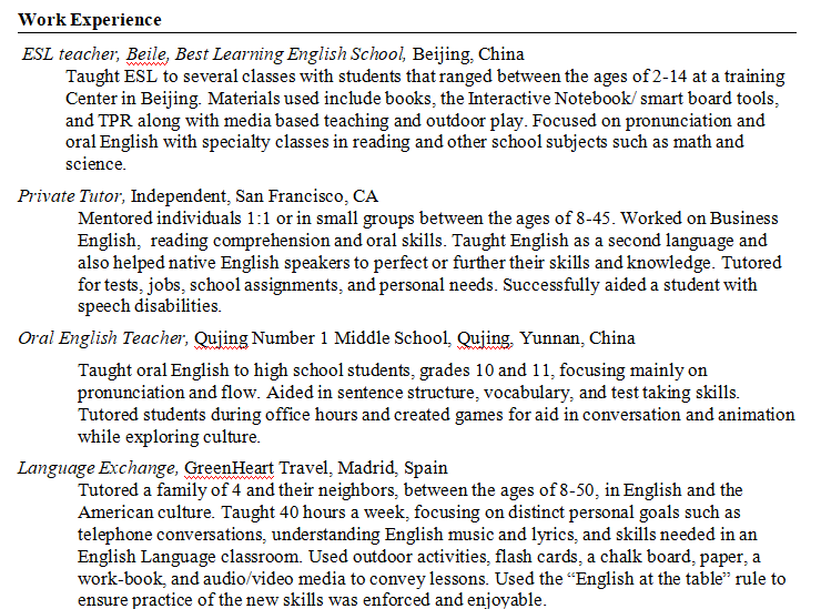 國籍: 其他 求職意向: 教師