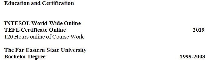 國(guó)籍: 俄羅斯 求職意向: 教師