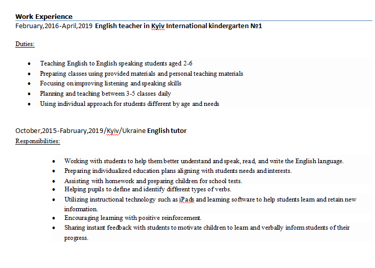國籍: 烏克蘭 求職意向: 教師