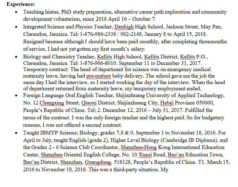 牙買(mǎi)加,資料具備, 有教學(xué)經(jīng)驗(yàn) .學(xué)科也可以教---------生物學(xué)/科學(xué)/數(shù)學(xué)/英語(yǔ) 地理教師 都可教, 城市不限, 學(xué)校類(lèi)型不限 |