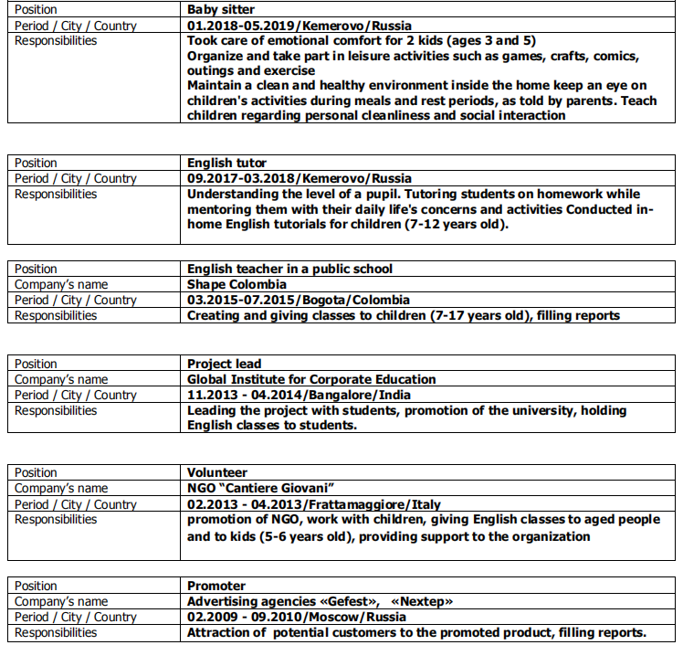 國籍: 俄羅斯 求職意向: 教師