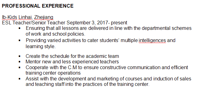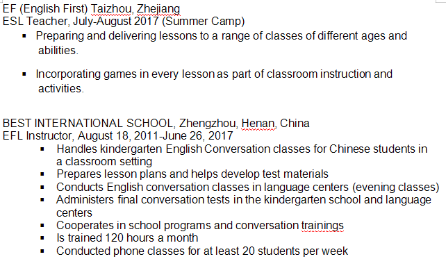 面試詳情:『職福建,廣州,常州、無錫、溫州,嘉興,南通.』的用人單位可約該外教面試