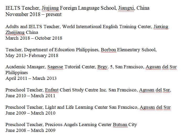 國籍: 塞爾維亞 求職意向: 教師