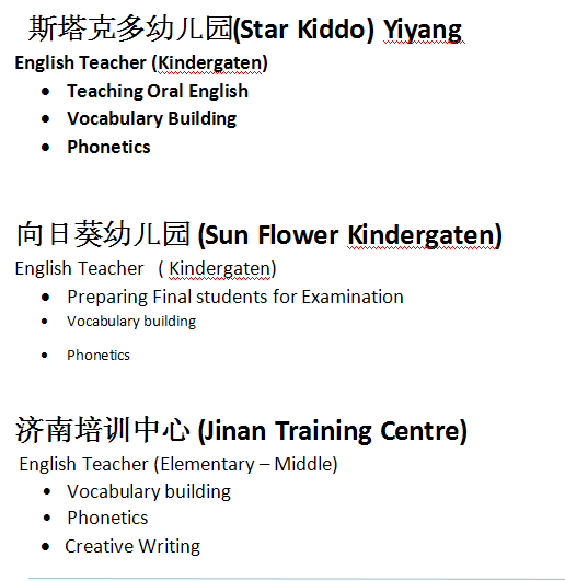 在鎮(zhèn)江,碩士,有教學(xué)經(jīng)驗(yàn),學(xué)生簽(4個(gè)月畢業(yè)可申請(qǐng)工簽),TEFL ,盡快到崗,城市不限,薪資可協(xié)商 |