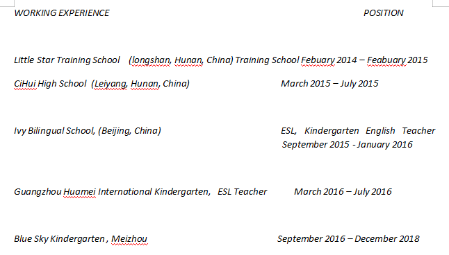 國(guó)籍: 哥倫比亞 求職意向: 教師