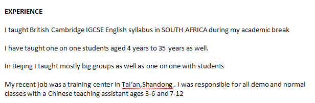 南非/荷蘭混血,在溫州,學(xué)士學(xué)位,求職南非城市,學(xué)生簽(下年畢業(yè)),TESOL(正在考)有教學(xué)經(jīng)驗(yàn),盡快到崗,在她的學(xué)術(shù)休息期間,曾在南非教英國(guó)劍橋大學(xué)英語教學(xué)大綱。 |