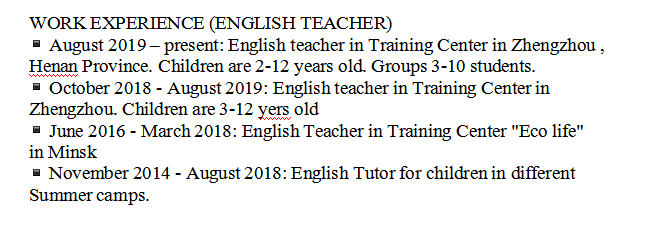 國籍: 俄羅斯 求職意向: 教師