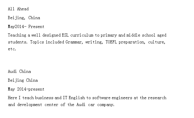 學歷: 本科 期望薪資: 3000-4000(Yuan/M)