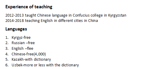國籍: 俄羅斯 求職意向: 教師