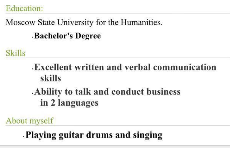 國(guó)籍: 俄羅斯 求職意向: 教師