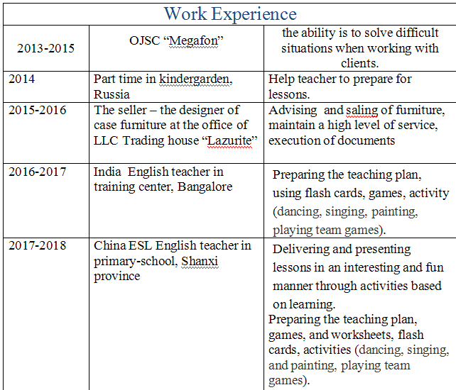 國(guó)籍: 俄羅斯 求職意向: 教師