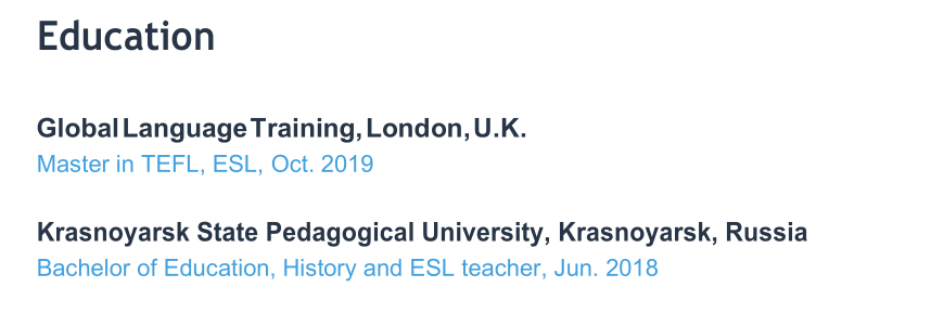 國籍: 俄羅斯 求職意向: 教師