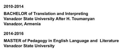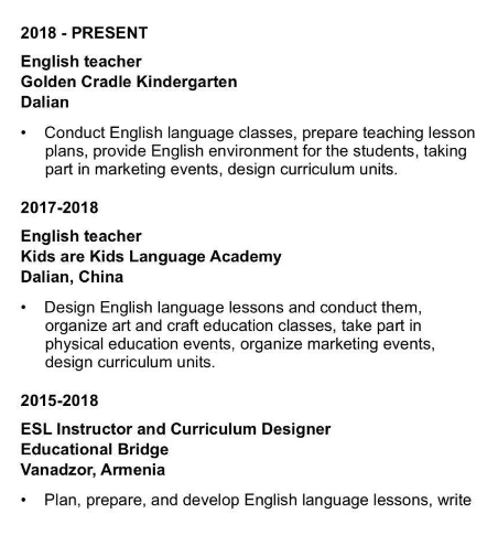 國(guó)籍: 亞美尼亞 求職意向: 教師