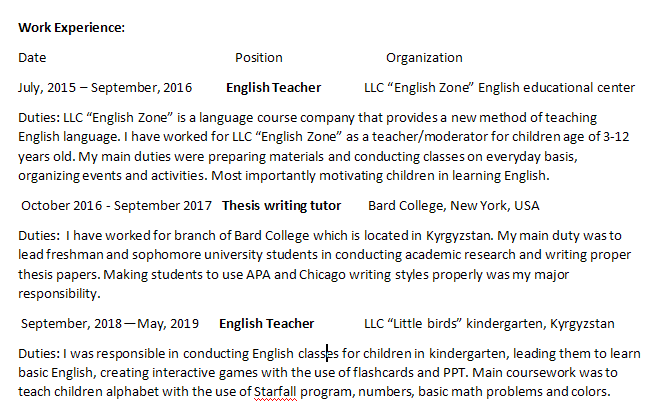 國籍: 亞美尼亞 求職意向: 教師