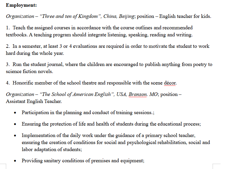 外教的工作經(jīng)歷