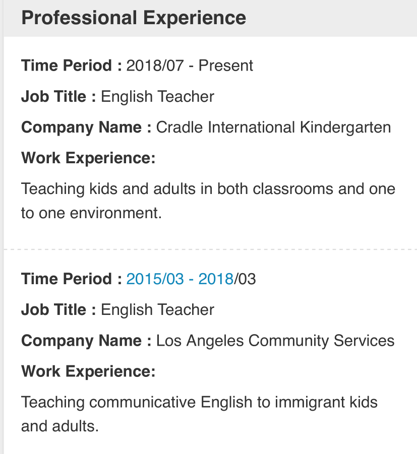 國籍: 其他 求職意向: 教師