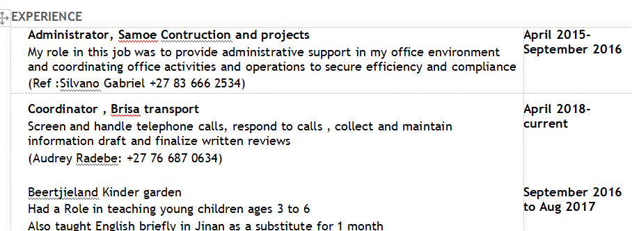 南非, 女, 本科, 在本國, 資料下周拿到, 求職不限制,培訓班可以, 薪資 10-12 |