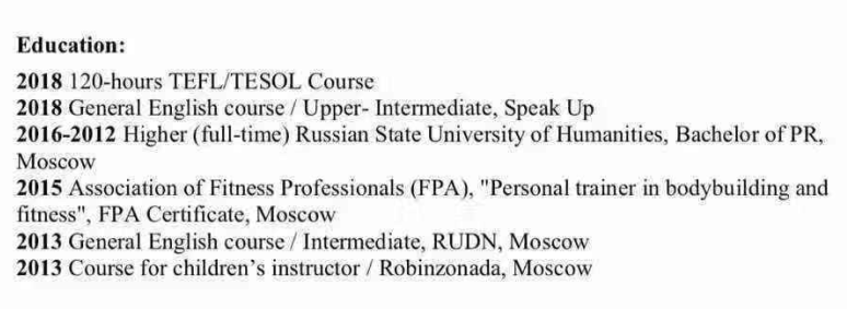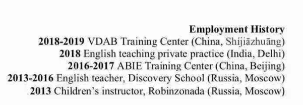 國(guó)籍: 俄羅斯 求職意向: 教師