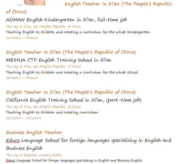 國(guó)籍: 俄羅斯 求職意向: 教師